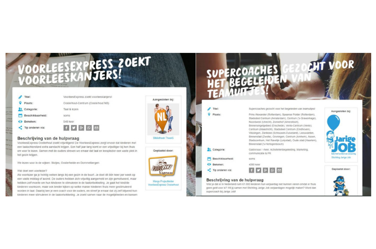 Als gepassioneerd vrijwilligerswerk-matchmaker zien we dagelijks duizenden vacatures/vragen voor vrijwilligers langskomen. Letterlijk: want er staan op dit moment duizenden vrijwilligersactiviteiten live. Als je op zoek bent naar een helpende hand (of andere mooi uitgedrukte lichaamsdelen als een meedenkend brein of warm hart) dan begeef je je op de grootste concurrentie markt van Nederland. Ter vergelijking: in deze florerende arbeidsmarkt met meer banen dan ooit, blijken er op de grotere banensites gemiddeld zo’n 2.500 vacatures te vinden. Een factor 10 verschil met vrijwilligersvacatures dus!